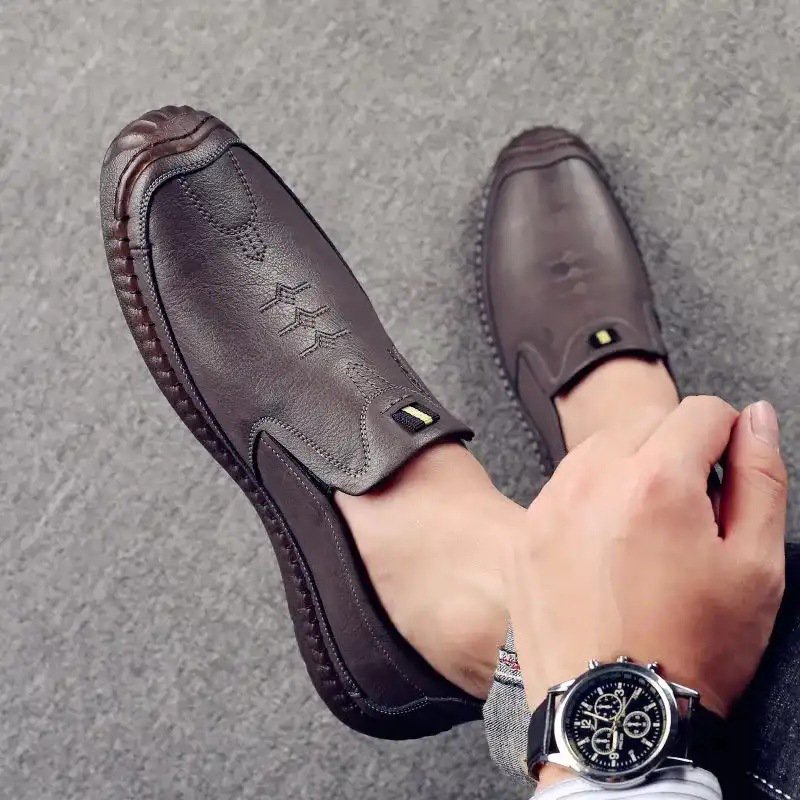 حذاء جلد كاجوال سهل الارتداء والخلع للرجال من الماركة الإيطالية(أكثر مبيعا)